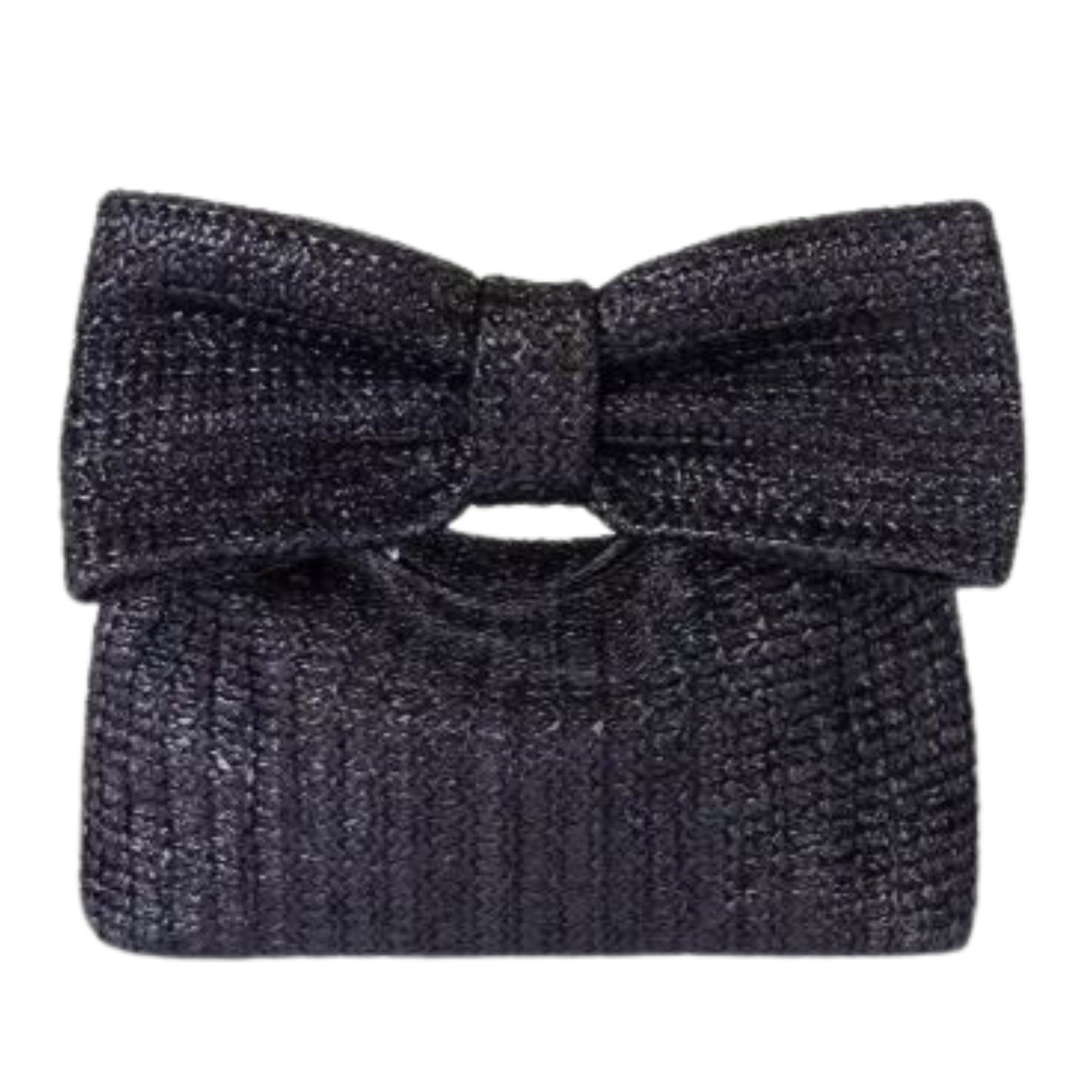 Crafted from two types of fabric - rayon and woven straw, this clutch seamlessly combines soft sophistication with a chic, textured finish. The statement bow detail adds a graceful, feminine touch, making it a standout accessory for casual outings, evening events, or formal gatherings.