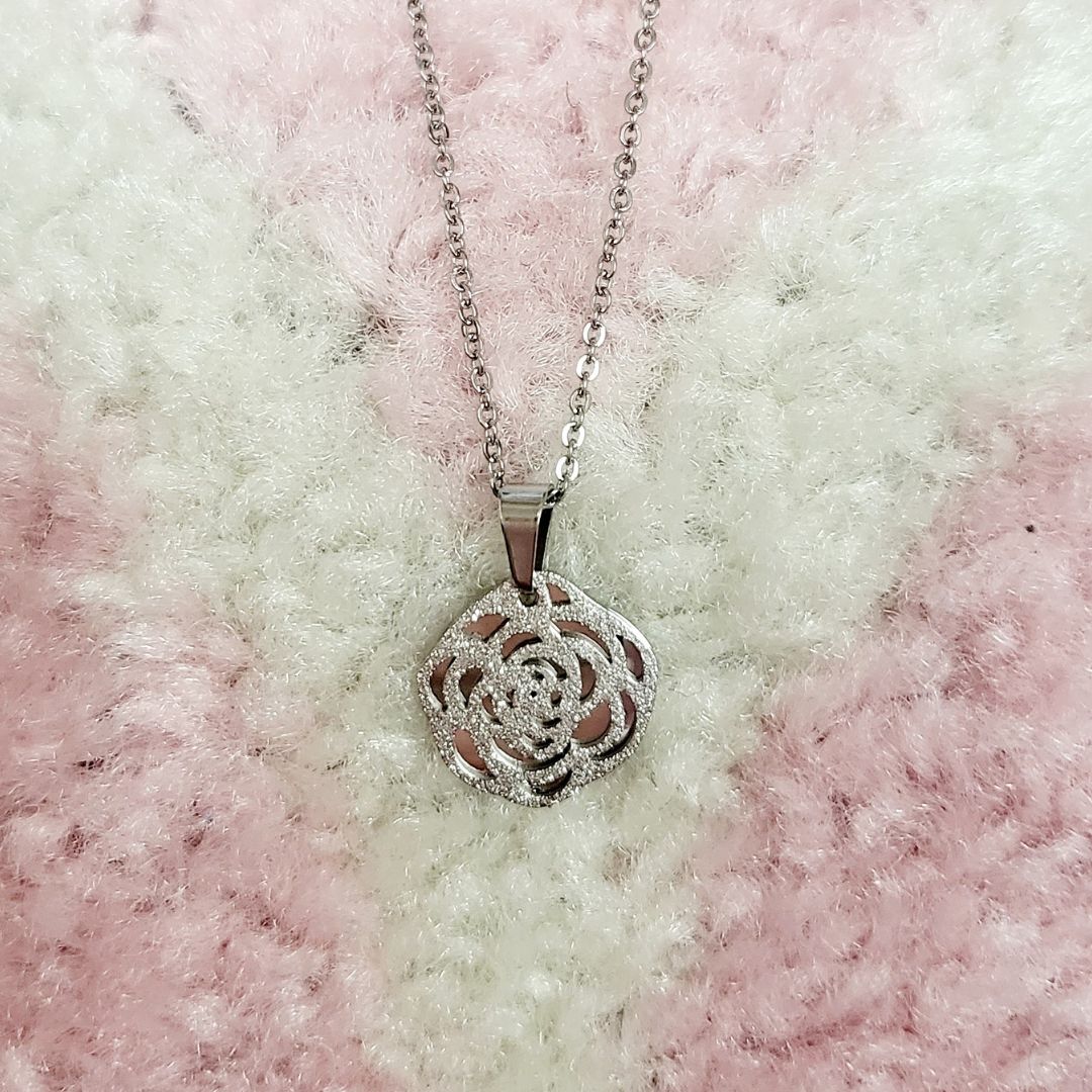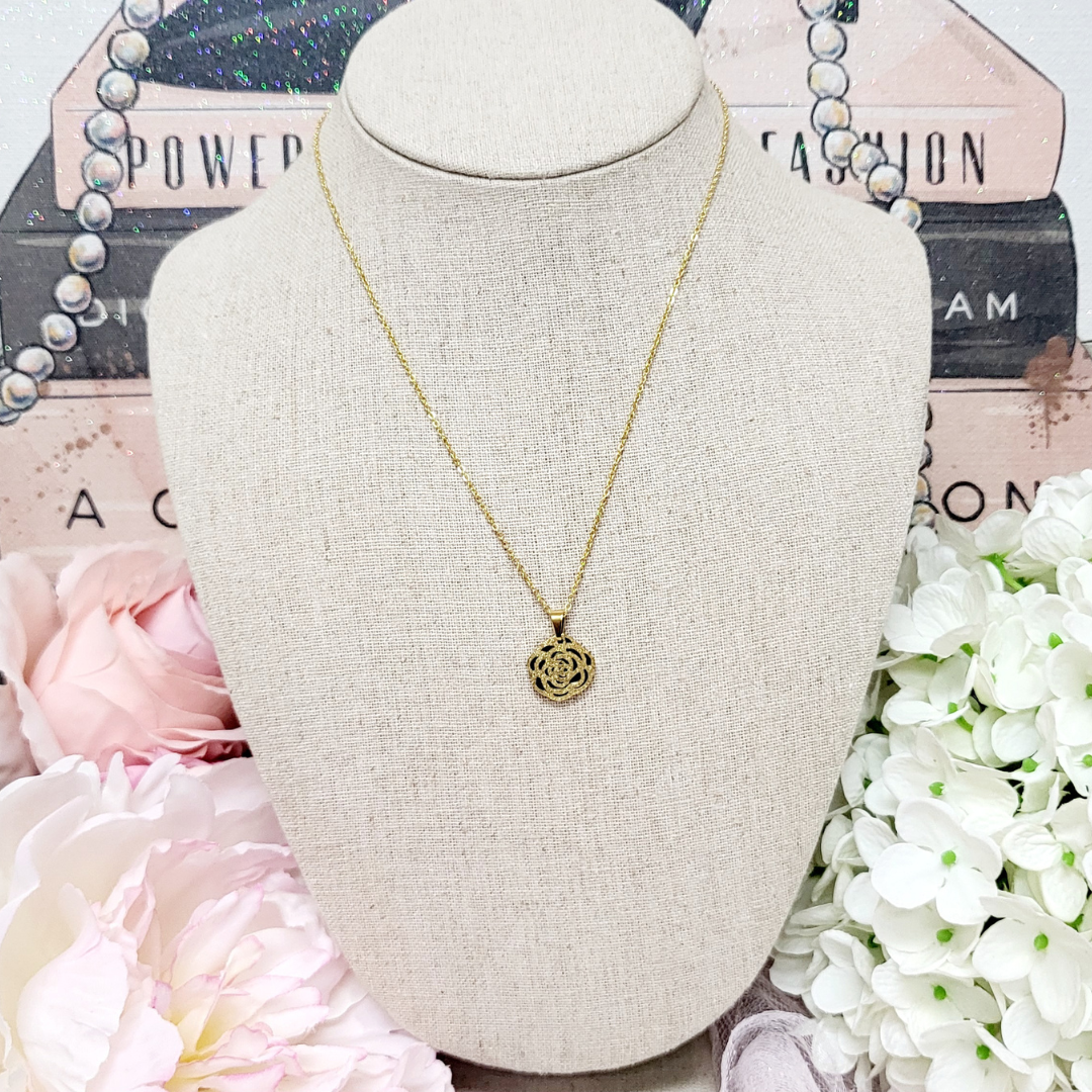 Pretty design in stainless steel,18K gold plated chain and pendant Hypoallergenic. Adjustable chain (16-18.5 inches).