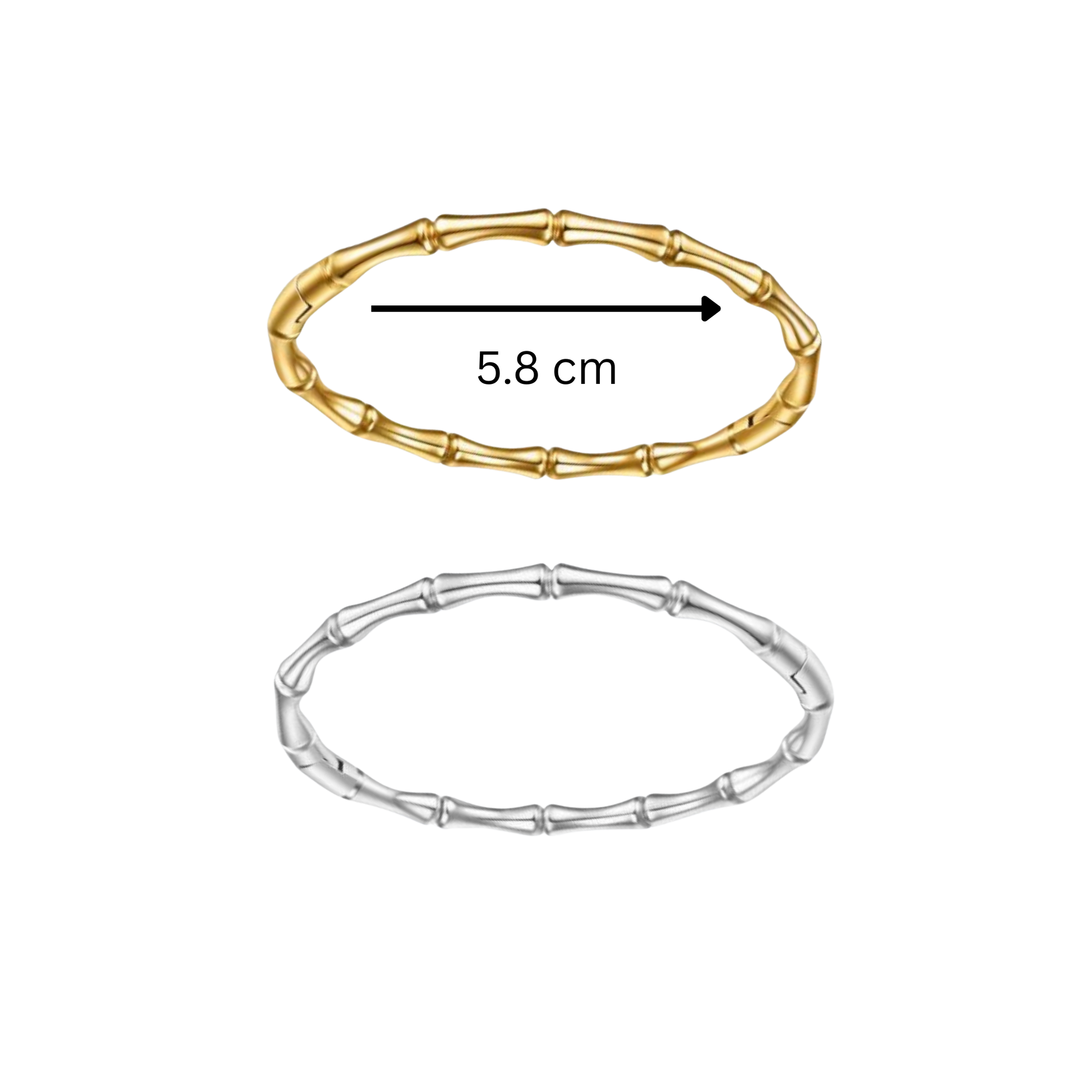 Inspired by the natural elegance of bamboo, this bracelet brings together organic curves and modern sparkle. Crafted from durable stainless steel and finished in luxurious 18K gold plating.