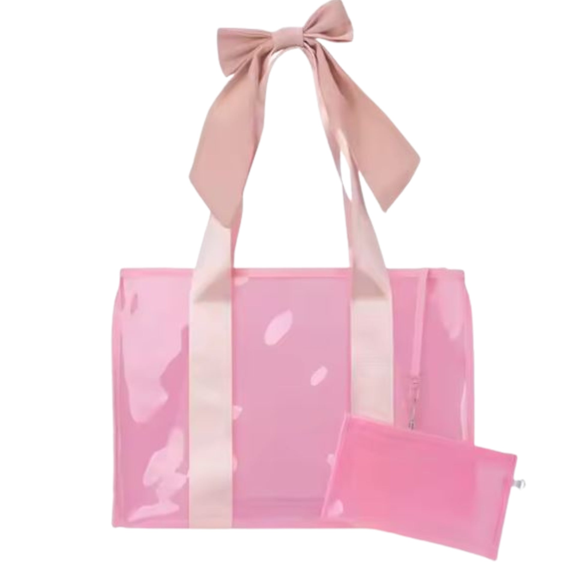Crafted from waterproof material. The statement bow detail adds a touch of sophistication, making it a chic companion for beach outings, travel, or everyday use. Spacious interior for all your everyday essentials.