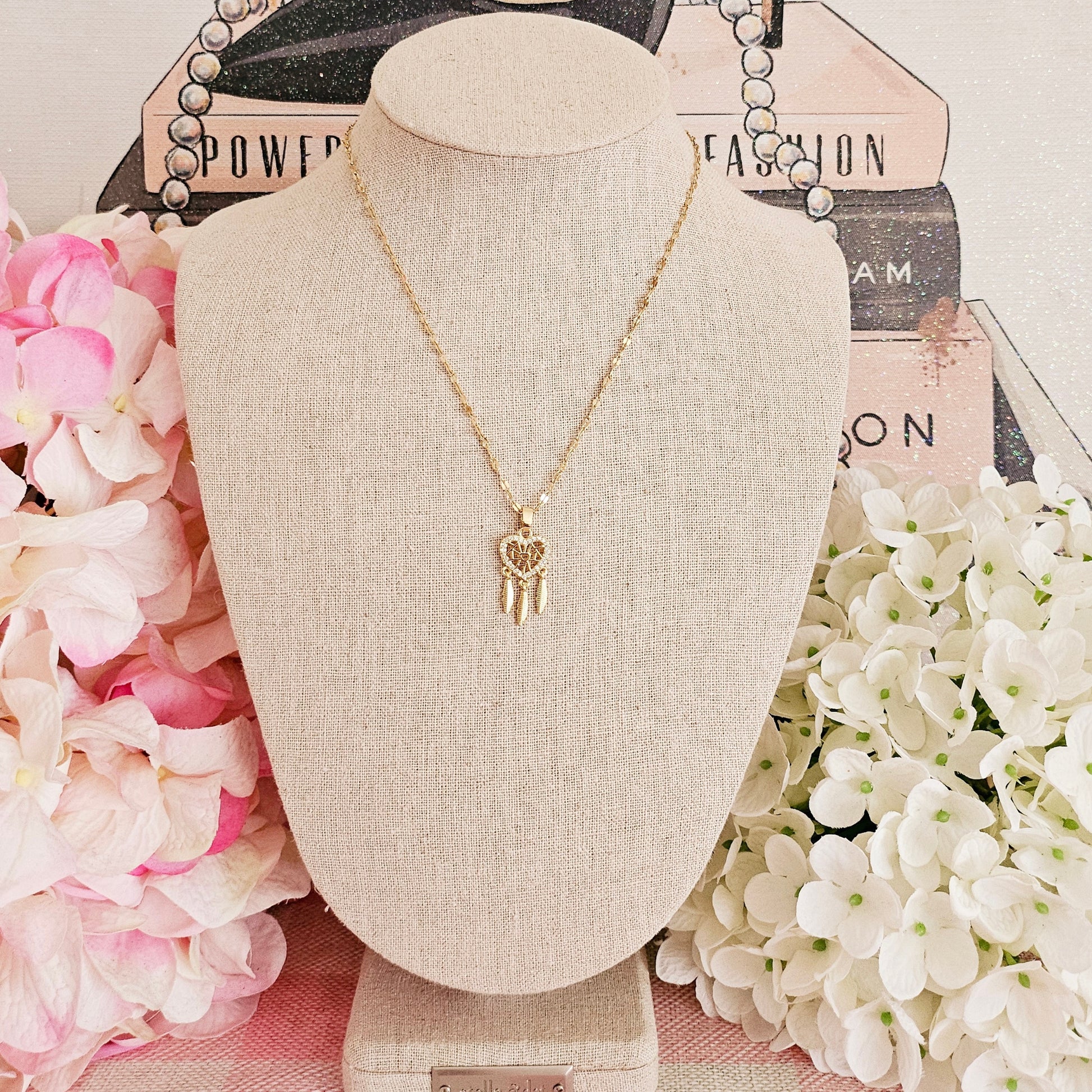 Dreamy design in 18K gold plated stainless steel. Hypoallergenic. Adjustable chain (16-18.5 inches).