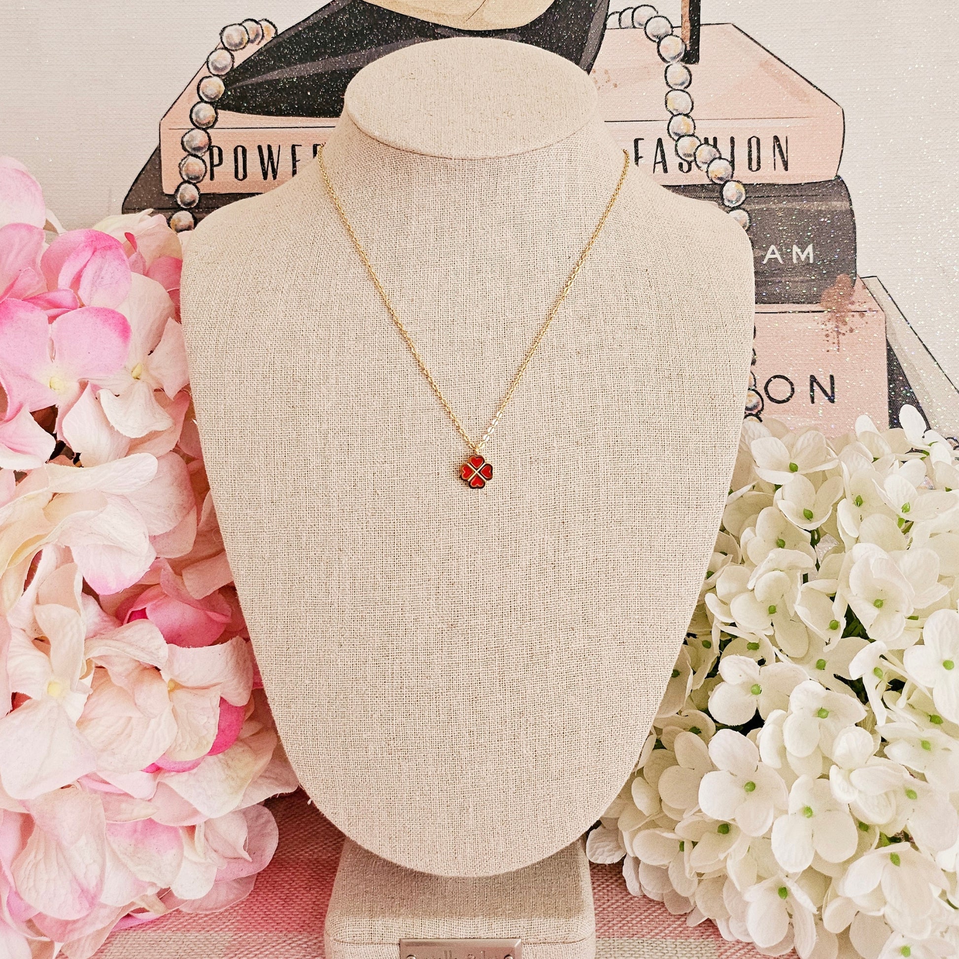 This elegant necklace combines timeless style and features a heart-shaped pendant adorned with a delicate shamrock motif with a touch of charm. Crafted from durable stainless steel and plated in luxurious 18k gold, it . The shamrock symbolizes luck and positivity, while the heart shape adds a romantic touch. A perfect gift for someone special—or a beautiful addition to your own jewelry collection.